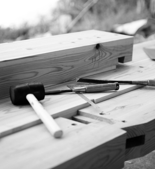 のです。木の性質を見極め手刻みした木材は、釘やボルトを使わずとも、丈夫に組み上がります。